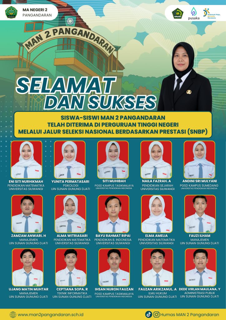 Keberhasilan ini diharapkan menjadi motivasi bagi seluruh siswa MAN 2 Pangandaran untuk terus berprestasi dan meraih cita-cita melalui jalur pendidikan tinggi.